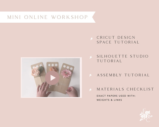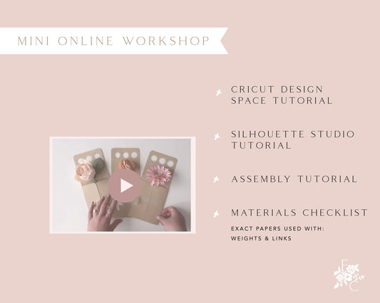 Learn how to make packaging for your paper flowers in these online workshops for Cricut and Silhouette cutting machines - perfect for gifts! All workshops include video tutorial instructions and digital download templates in svg and studio3 file formats.